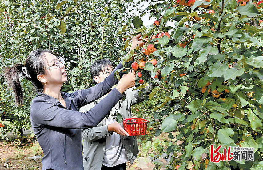 10月1日,在张家口市宣化区大慢岭村的海棠园里,游客在采摘海棠果。 河北日报记者 郭晓通摄