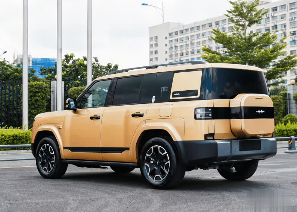 外观方面,新车采用硬派越野车常见的“方盒子”造型,配备双层分体式大灯,前包围造型厚重,凸出的设计注重实用性,风挡玻璃顶端配备了激光雷达。新车侧窗的线条平直,配备传统样式的车门把手,尾部的“小书包”实为储物空间,贯穿尾部的黑色装饰增添了层次感。新车的长宽高分别为4999/1995/1865mm,轴距2920mm。