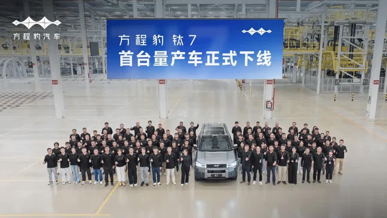 方程豹旗下的中大型SUV——方程豹钛7首台量产车正式下线。新车采用承载式车身设计,外观延续经典的“方盒子”造型,计划今年四季度正式上市。